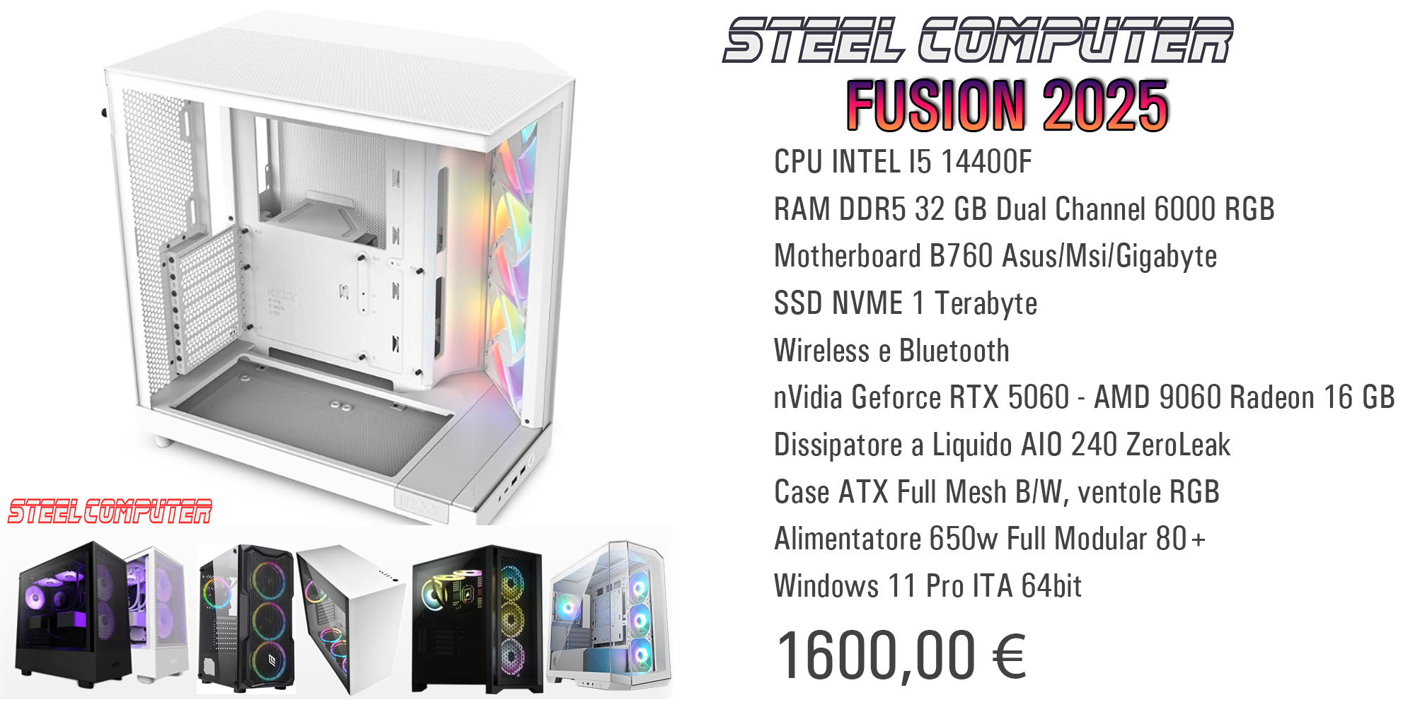 Contattaci per un preventivo personalizzato. Ecco qualche build che proponiamo. I prezzi sono indicativi